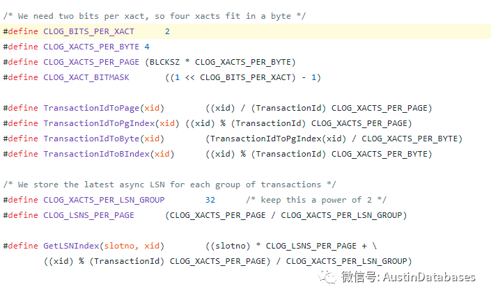 CLOG_BITS_PER_XACT 2 一个事务使用2BIT