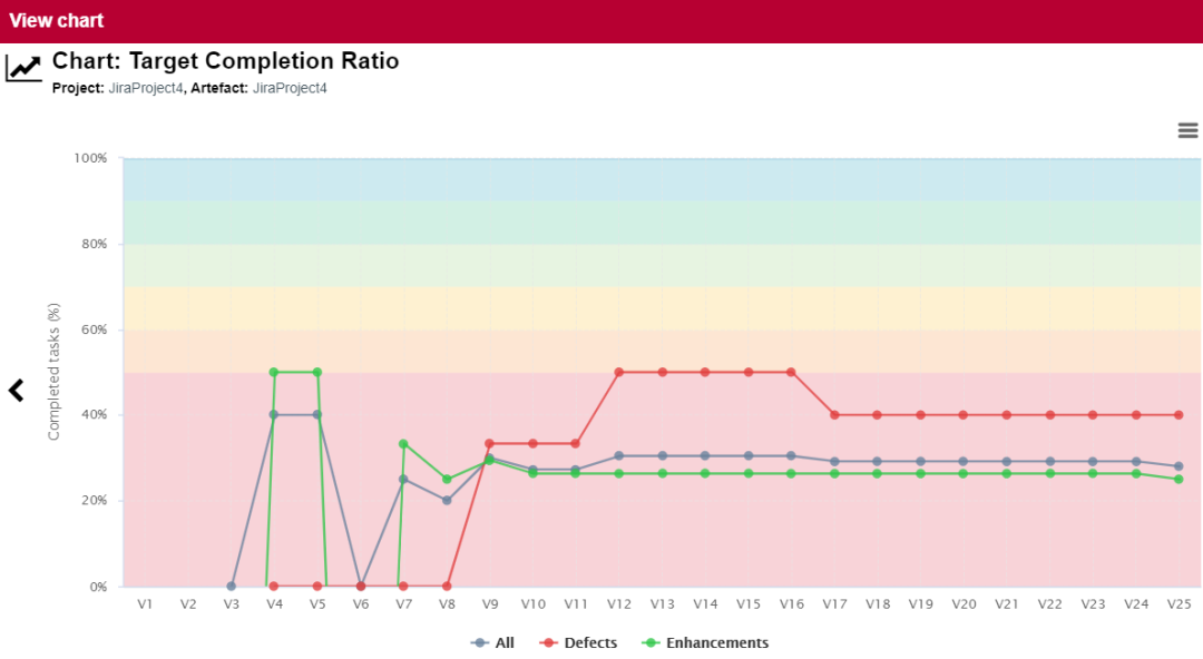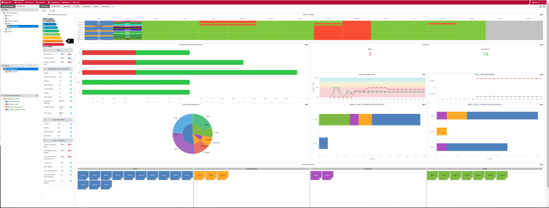 本篇文章主要介绍如何将JIRA中的标签(下文统称Ticket,见图2)数据同步至Squore,并依托Squore强大的数据挖掘能力,自动呈现出多维直观的看板管理视角(见图3),便于项目团队成员实时掌握开发/测试状态,并辅助项目管理层做出是否释放软件版本的决策。
