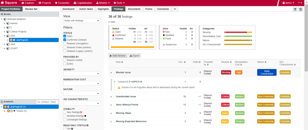 此外,Squore支持用户通过界面链接接口快速回访至JIRA,从而及时进行任务状态的更新与维护。