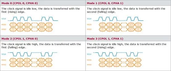 当采用单主机多从机的通讯拓扑时,SCLK、MOSI、MISO均为1根线由主机并联至各从机,而CS片选信号线的数量,需要与从机数量对应。时序模式如图2。