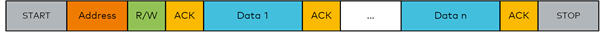 数据在Master主机和被寻址的Slave从机之间按字节进行数据传输,相应的接收方通过 ACK 进行应答(低电平);