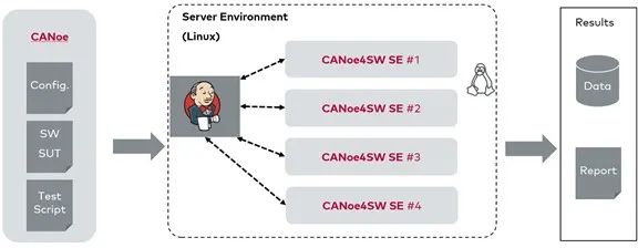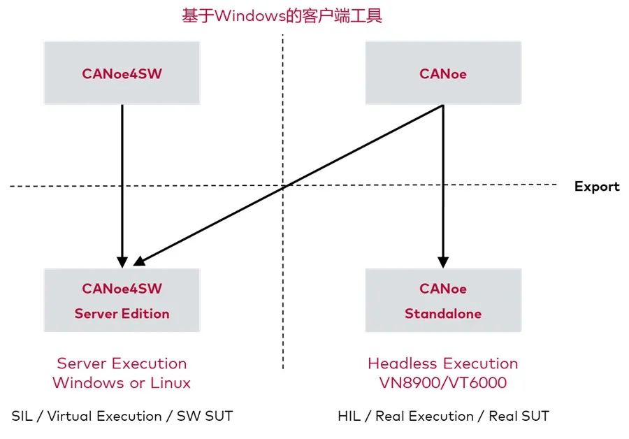 CANoe4SW SE(CANoe4SW Server Edition)是基于Linux平台的成熟方案(也支持Windows Server部署环境)。从CANoe 15.0和vVIRTUALtarget 5.0发布伊始,无缝对接Linux平台成为可能。基于Windows的CANoe项目工程文件可以直接导出并部署在Linux环境中,在CANoe4SW SE导入直接运行,避免二次配置的麻烦。