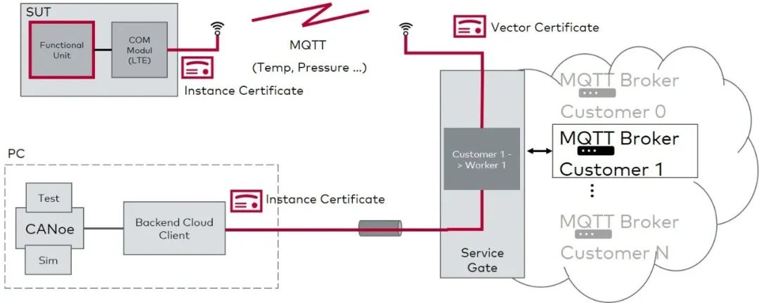CANoe 13.0发布互联服务功能(Connectivity Features Services,CFS),是CANoe面向物联网(Internet of Things,IoT)和消息队列遥测传输协议(Message Queuing Telemetry Transport,MQTT)等互联应用场景开发的仿真和测试功能。其中MQTT是一种基于发布/订阅(Publish/Subscribe)模式的“轻量级”通信协议,用于OTA系统的测试,以及车联网系统中MEC和RSU/TSP之间的通信。CFS支持场景包括:MQTT Broker部署在云端时互联传感器或执行器设备功能仿真与测试;位于本地PC的Broker和CAN与MQTT网关路由。CFS支持证书(PEM或PFX格式证书)的授权(Certificates)访问机制,通过TLS确保Server和Client数据交互的安全。
