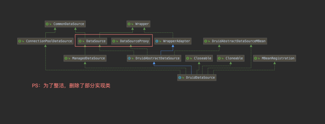 后面发展逐渐脱离了原本的轨道预期,比如 DruidDataSource 就同时实现了两者,类图如下