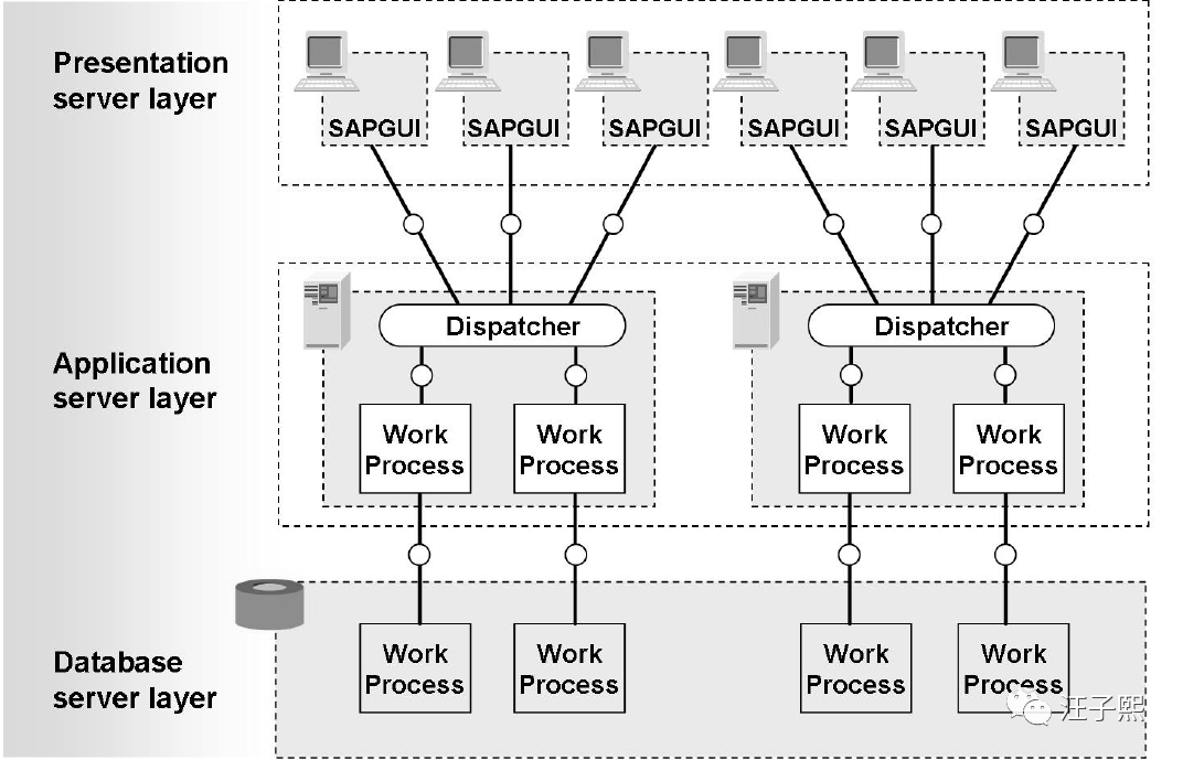 SAP R/3 中的数字 3,代表展现层,应用层和数据库层分别部署,这也标志着 SAP R 系列的软件发展到成熟期。