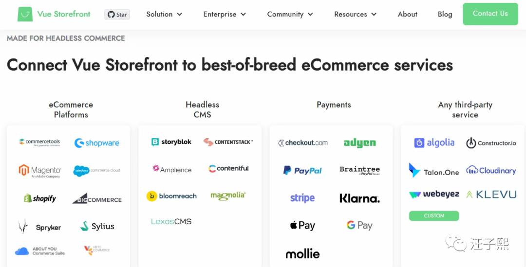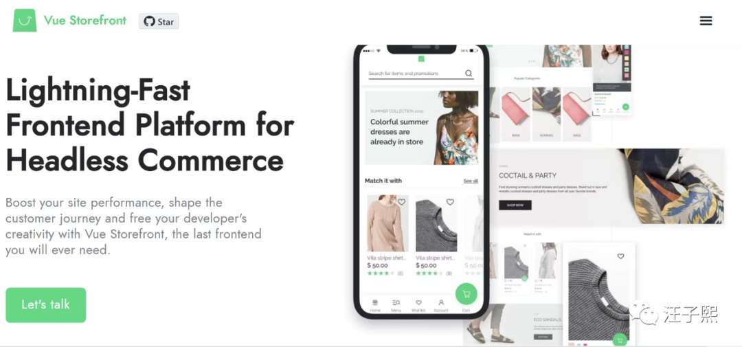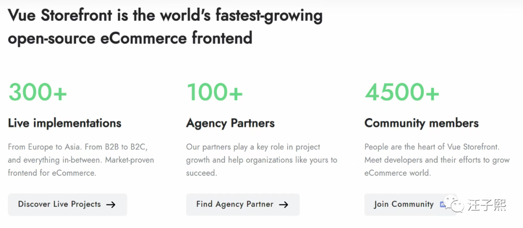 最近我们组内的同事,也聊到了另一款开源的电商 Storefront 开发框架,算是 SAP Spartacus 的竞争对手吧,叫做 Vue Storefront: