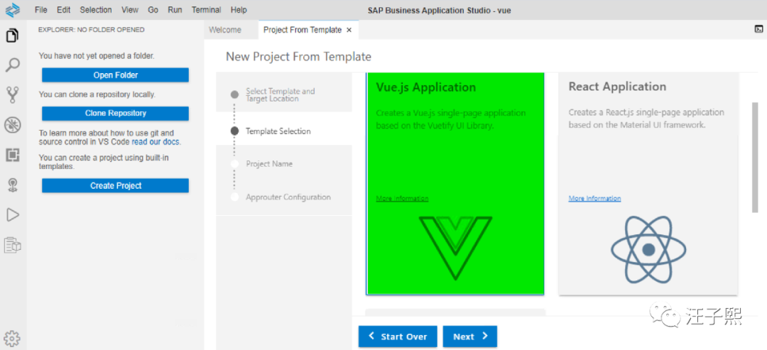 我们一起来看看 SAP Business Application Studio 对 Vue 开发的支持程度。