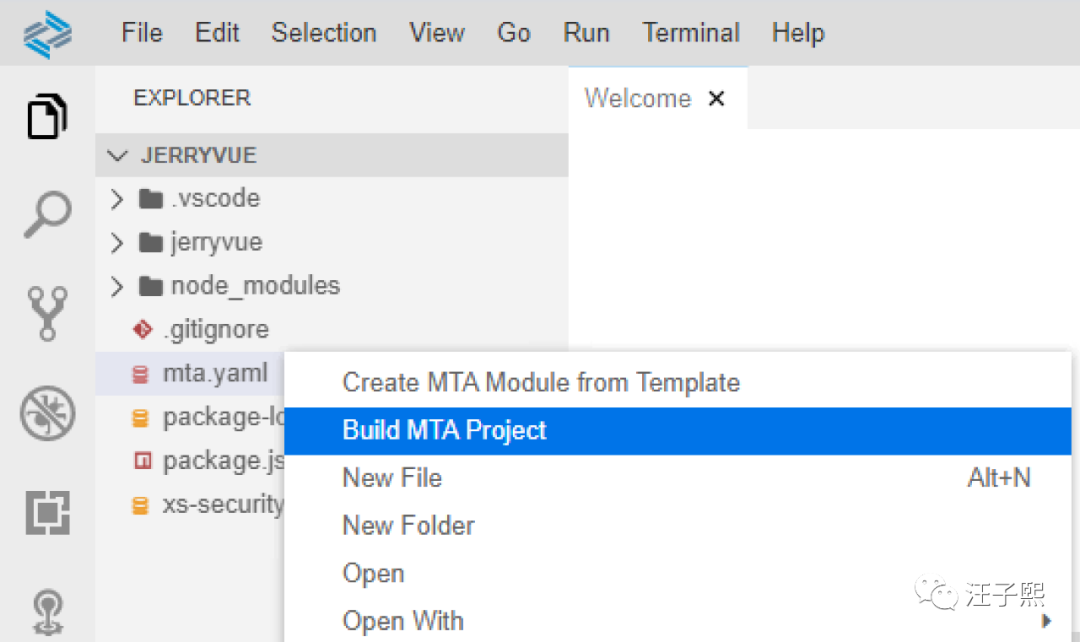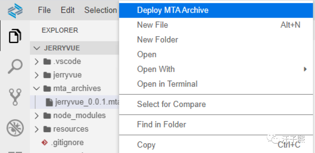 下一步,对该 Vue 进行 build,然后部署到 SAP BTP 平台上。依次在右键菜单里选择 Build MTA Project 和 Deploy MTA Archive 进行构建和部署: