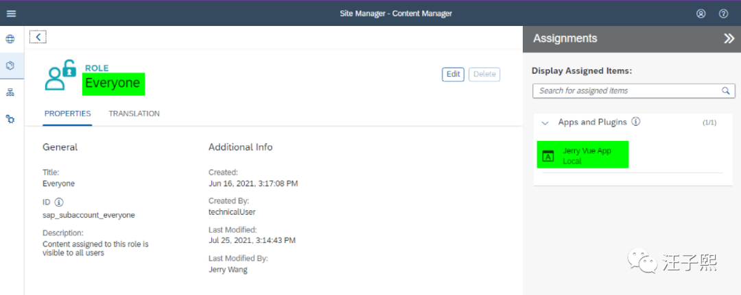 把这个新的应用,分配到名为 Everyone 的 Role 之中: