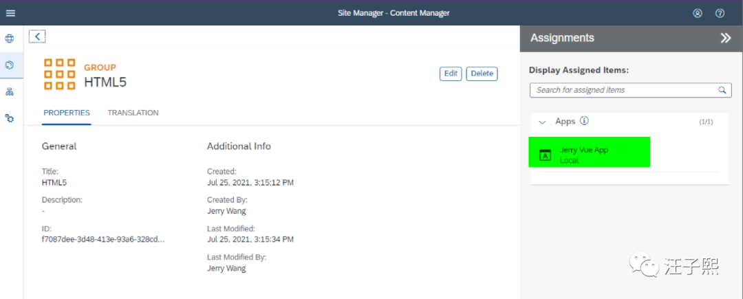 创建一个名为 HTML5 的 Group,这个组相当于 Fiori Language 里的 tile catalog: