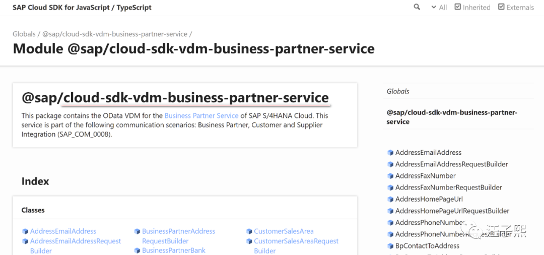 为了消费 Business Partner OData 服务,我们在 SAP 官网上搜索其 SDK npm 包: