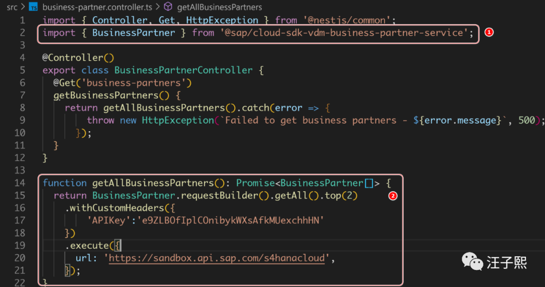 下面是使用 Cloud SDK 查询 API Hub Sandbox 系统上前两条 Business Partner 数据的完整代码,其中核心代码也就十行左右: