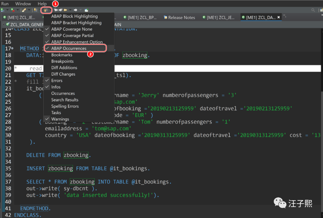 在使用该功能时,确保编辑器里的 "ABAP Occurances" 处于开启状态。