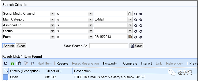 通过 SAP CRM 后台创建的工作流,该邮件的发送,会触发呼叫中心自动创建一条对应的条目,供座席处理:
