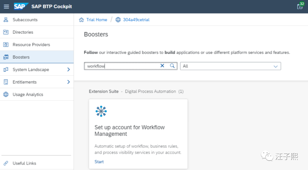前一篇文章 SAP 业务技术平台(BTP)上的 Business Rules Service 使用介绍,我们已经使用了 SAP BTP Cockpit Boosters 中的 Set up account for Workflow Management, 快速完成了在 SAP Business Technology Platform(下文简称 SAP BTP)上使用 Workflow 功能所需的配置。