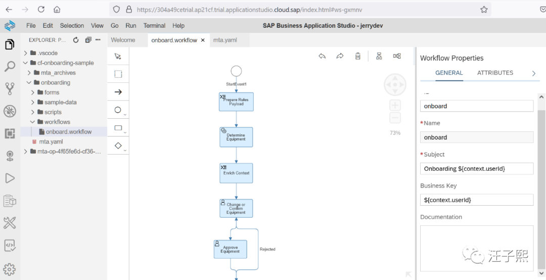 接下来,我们可以使用 Business Application Studio,开发一个 Workflow 应用。