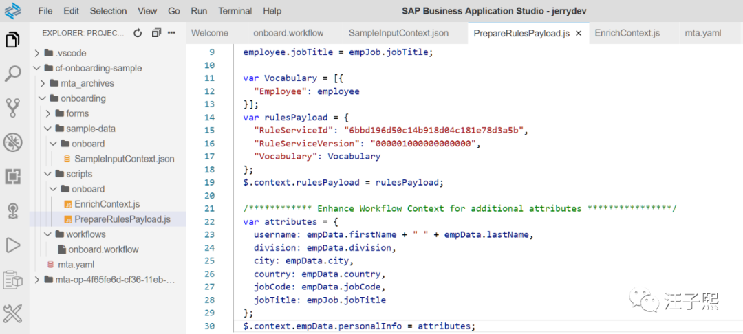 这个应用的核心逻辑实现在文件 onboard.workflow 中,下面简要介绍其关键步骤。