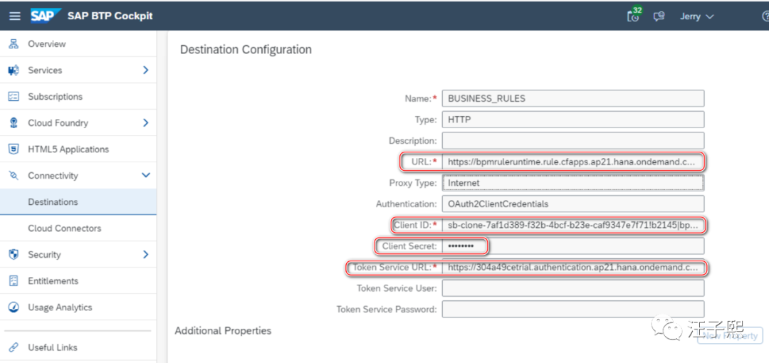 Destination 这些字段的详细维护方式,在 Jerry 前一篇文章 SAP 业务技术平台(BTP) 上的 Business Rules Service 使用介绍 已经详细介绍过。