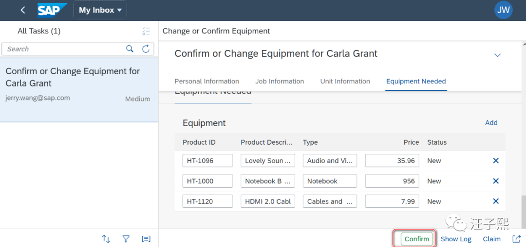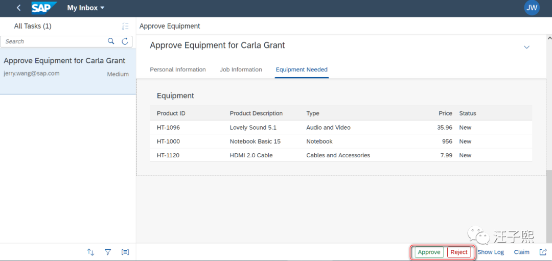 回到 Fiori Launchpad,此时我的收件箱 Inbox 里,新增了一个条目: