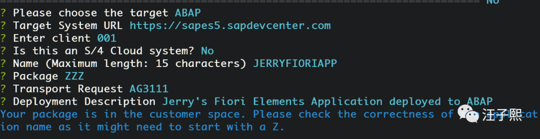 我们在这个命令行向导里输入的内容,会维护到一个名为 ui5-deploy.yaml 的配置文件里。因此,此处我们可以一路回车,待结束向导后,在 Visual Studio Code 里继续编辑 ui5-deploy.yaml 即可。