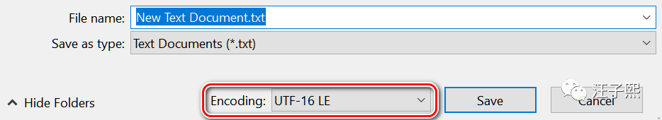 UTF-16 LE,即 Little Endian,小端存储,高位字节放在高地址表示。