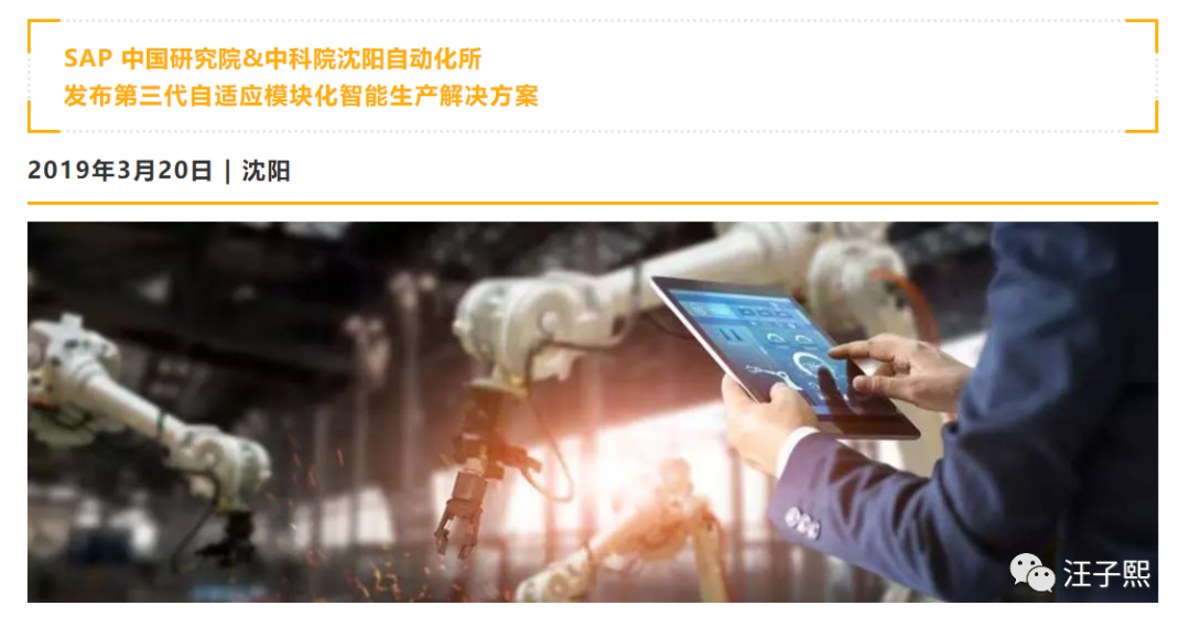 SAP中国研究院&中科院沈阳自动化所重磅发布第三代自适应模块化智能生产解决方案