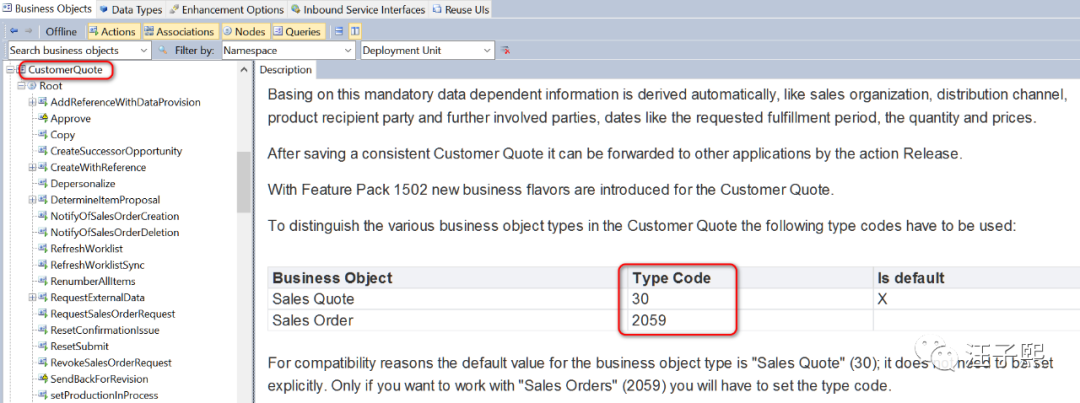 准确的说,被扩展的 BO 名称应该为 CustomerQuote,因为根据 SAP C4C 帮助文档介绍,Sales ORder 和 Sales Quote 共用同一个 BO 模型 CustomerQuote,通过模型字段 Type Code 的不同值来区分。