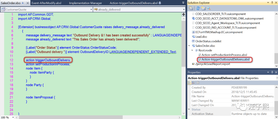 最后,在 SAP C4C UI 上点击 Trigger Delivery 按钮后,触发我们在 BO 上自定义的 action: