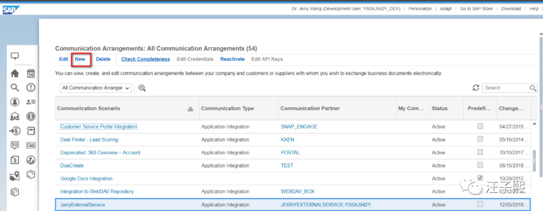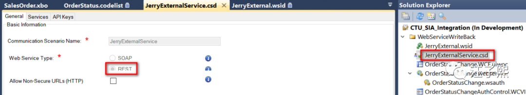 这个 Web Service 模型的创建,会同时自动创建一个 Communication Scenario,名称为 JerryExternalService: