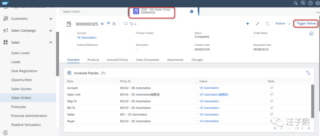 下面这个 POC 视频,是当时的项目兼产品经理,我的研究院同事 Cai Carol 制作的。视频最开头,展示的是从 SAP Cloud for Customer里创建销售订单。SAP C4C 销售订单创建完毕之后,点击订单明细页面的一个按钮,触发 S/4HANA 的交货单(Outbound Delivery)创建,进而触发接下来的制造流程的执行。
