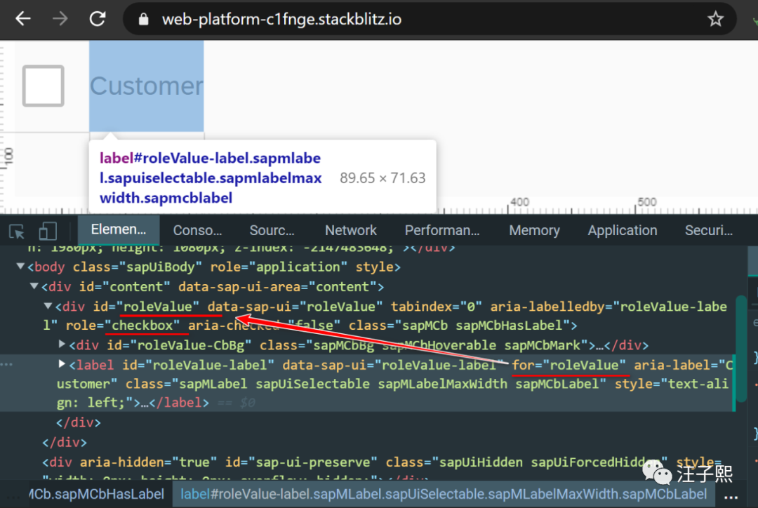 渲染出的 SAP UI5 页面里,我看到了期望出现的 Customer Checkbox,并且点击 Customer 文本,发现前面的小勾也自动被勾上了,说明 SAP UI5 的 Checkbox 控件,和 Spartacus 一样,也满足 Accessibility 的需求。