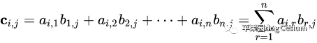 两个矩阵的乘法仅当第一个矩阵A的列数和另一个矩阵B的行数相等时才能定义。