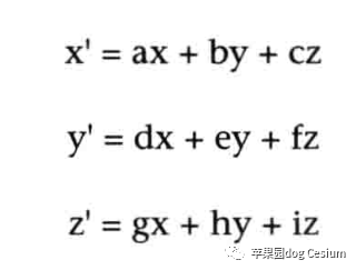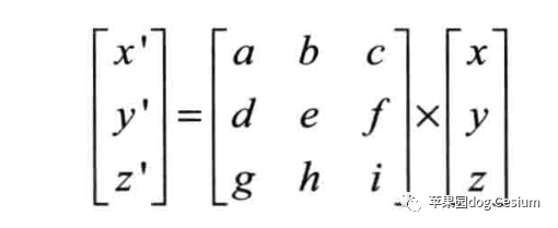 比如将一个空间中的点P(x,y,z)左乘一个3✖3的矩阵得到新的坐标P1(x',y',z')。