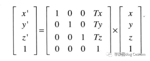 设点P(x,y,z,1),点P1(x',y',z',1),向量d=(tx,ty,tz,0),则
