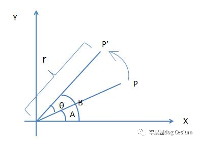 计算点p绕着z轴旋转θ角后的p‘的坐标,r为OP的长度。