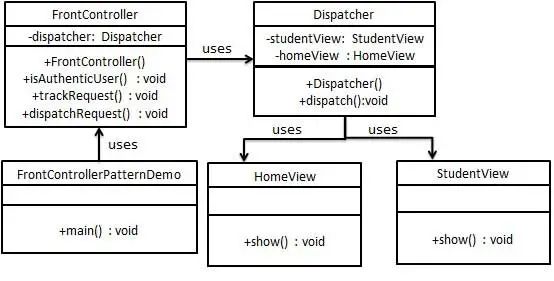 我们将创建 FrontController、Dispatcher 分别当作前端控制器和调度器。HomeView 和 StudentView 表示各种为前端控制器接收到的请求而创建的视图。