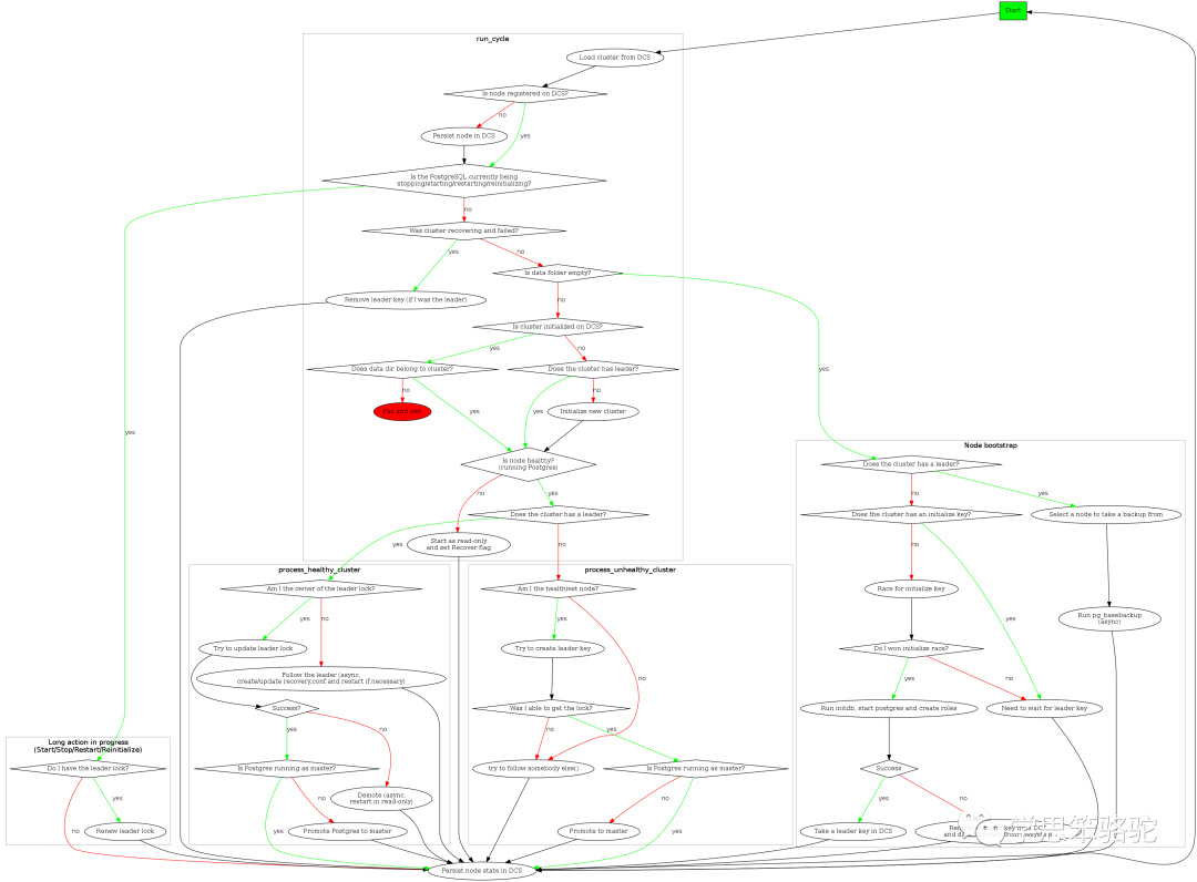 按照Patroni官方给的流程图,可以将整个流程划分为: