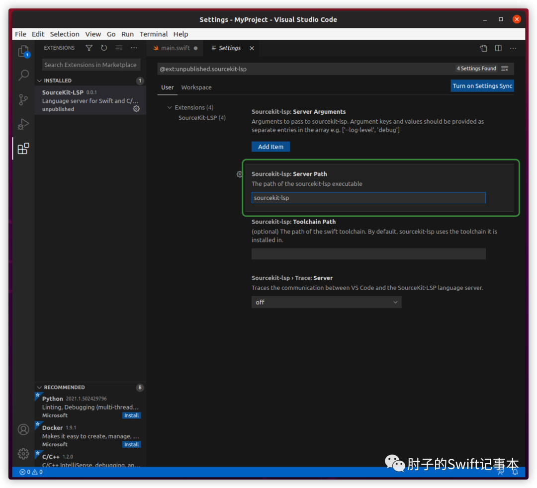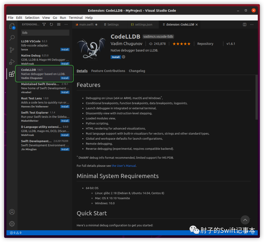 安装对应的插件并进行配置,才能在vscode中使用Swift的LSP功能。