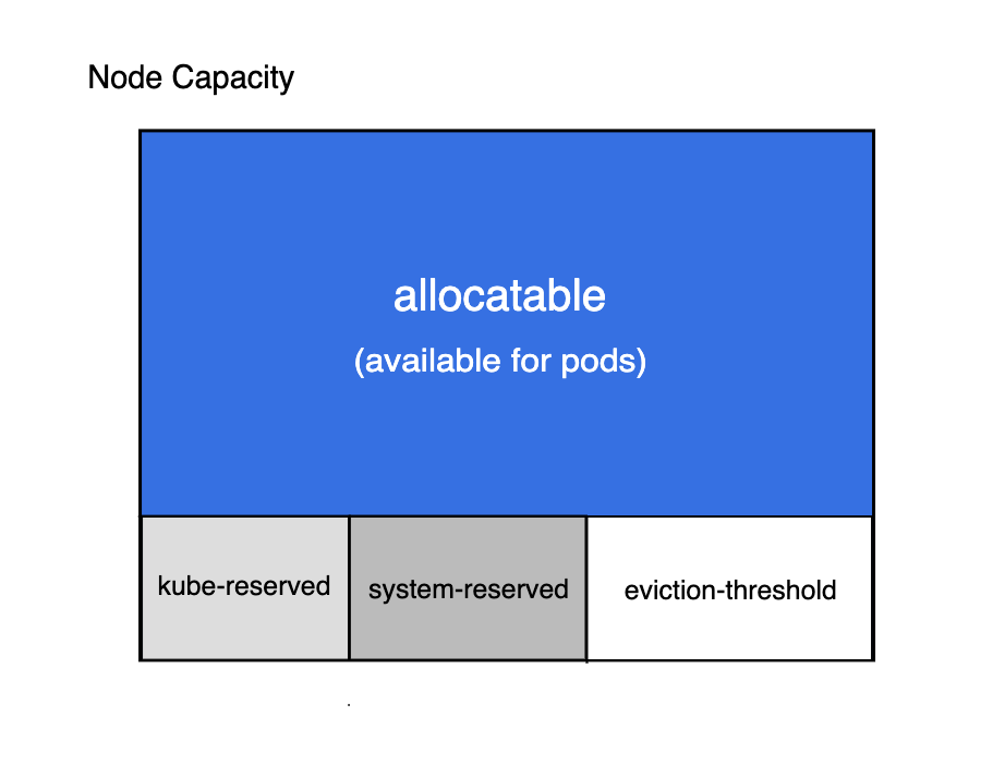 Node Allocatable Resource = Node Capacity - Kube-reserved - system-reserved - eviction-threshold