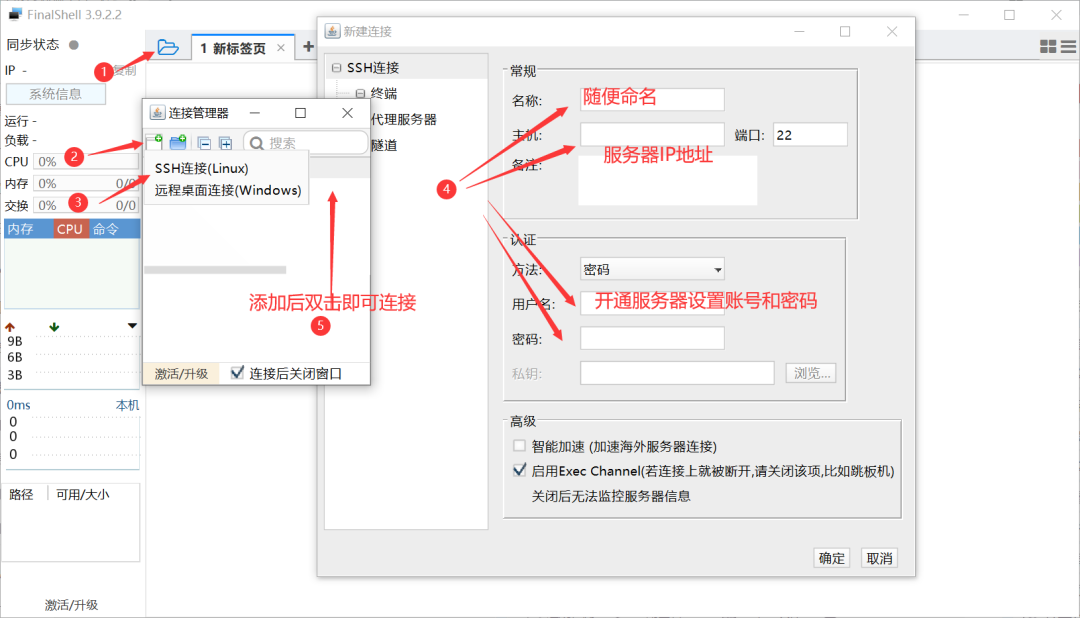 用来远程连接服务器的工具,连接成功后将用来远程操控服务器。