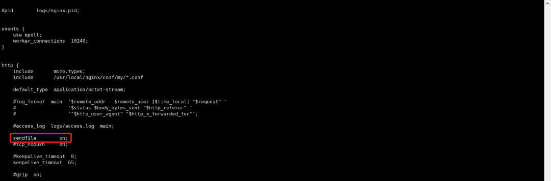tcp_nopush:必须是 sendfile 值为 on 时才有效,当 tcp_nopush 设置为 on 代表当数据包累计到一定大小时再发送,有助于提升文件传输效率。