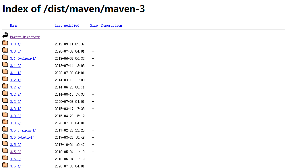 找到对应的版本后,从往期版本下载页(https://archive.apache.org/dist/maven/maven-3/)下载对应的Maven发布包