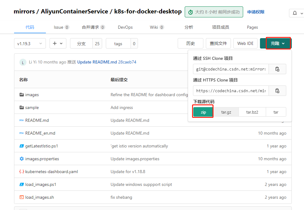 命令1(拉取镜像分支):git clone https://github.com/AliyunContainerService/k8s-for-docker-desktop.git