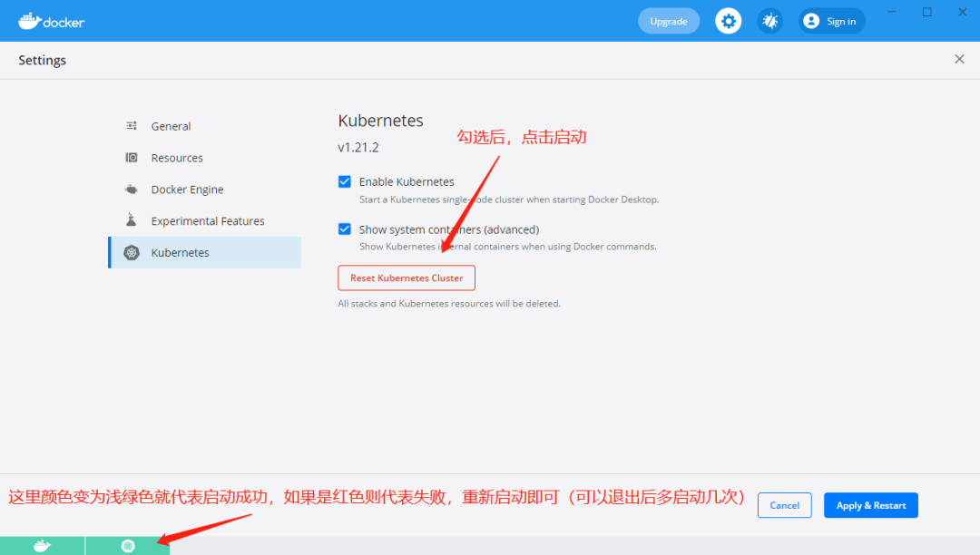 解决开启Kubernetes失败:https://blog.csdn.net/zhhao1/article/details/105752429/