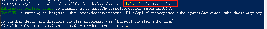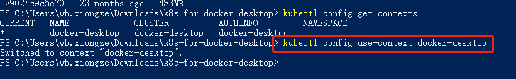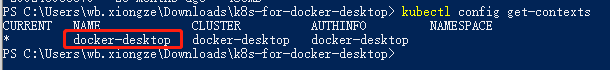 设置上下文(注意,后面的名称是查看上下文时的NAME,也就是docker-desktop,如果有docker-for-desktop的话也可以)