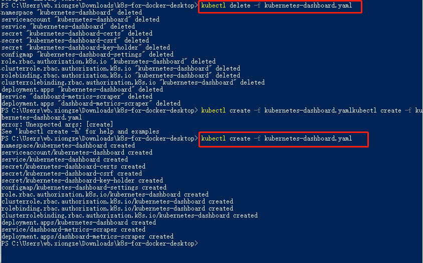 kubectl delete -f kubernetes-dashboard.yamlkubectl create -f kubernetes-dashboard.yaml