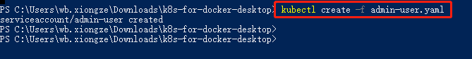 # admin-user.yamlapiVersion: v1kind: ServiceAccountmetadata:name: admin-usernamespace: kubernetes-dashboard