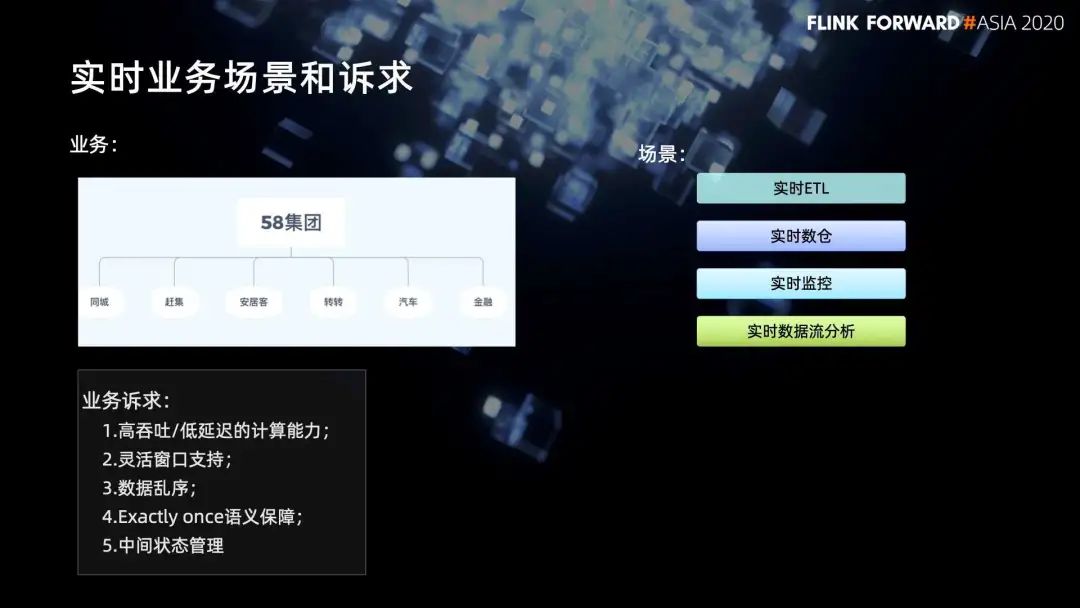 最后一种场景是实时数据流分析,比如说,数据乱序的处理、中间状态的管理、Exactly once 语义保障。