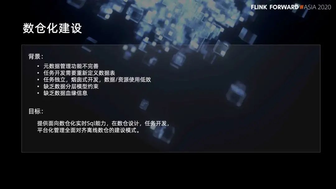 然后,Flink SQL 这一块,对于每个任务我们都可能需要重新定义一个数据表。并且由于数据没有分层的概念,导致任务比较独立,烟囱式开发,数据和资源使用率比较低下;