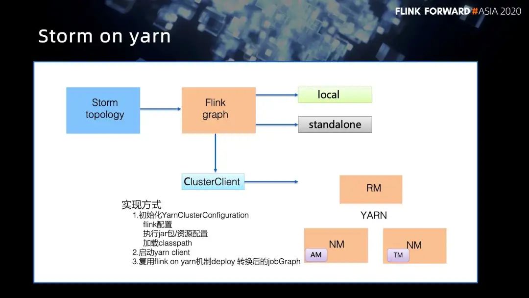 复用 Flink on yarn 机制 deploy 转换后的 jobGraph。